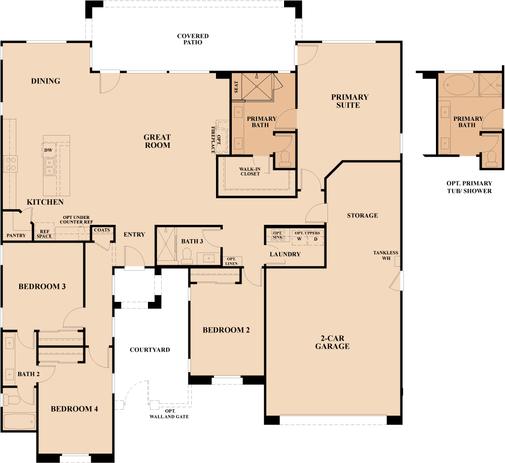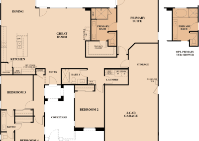 Due to a policy of continued enhancement or necessitated changes in the construction process, Monroe Living, Inc. reserves the right to change price, design, and specifications without prior notice or obligation. All square footages are approximate only. The floorplans, home elevations, and colors, landscaping and site plans are an artist’s depiction. Size, number, and location of windows, front entries and doors may vary per plan and/or elevation. Views vary per homesite location. All imagery is representational and does not depict specific building views, orientation, mass or future amenity details. Buyers at Seville at Paradiso will automatically become members of the Paradiso Homeowners Association which maintains all common areas including private streets, entry gates, mailboxes, and common landscaped areas. CA DRE # 01956853